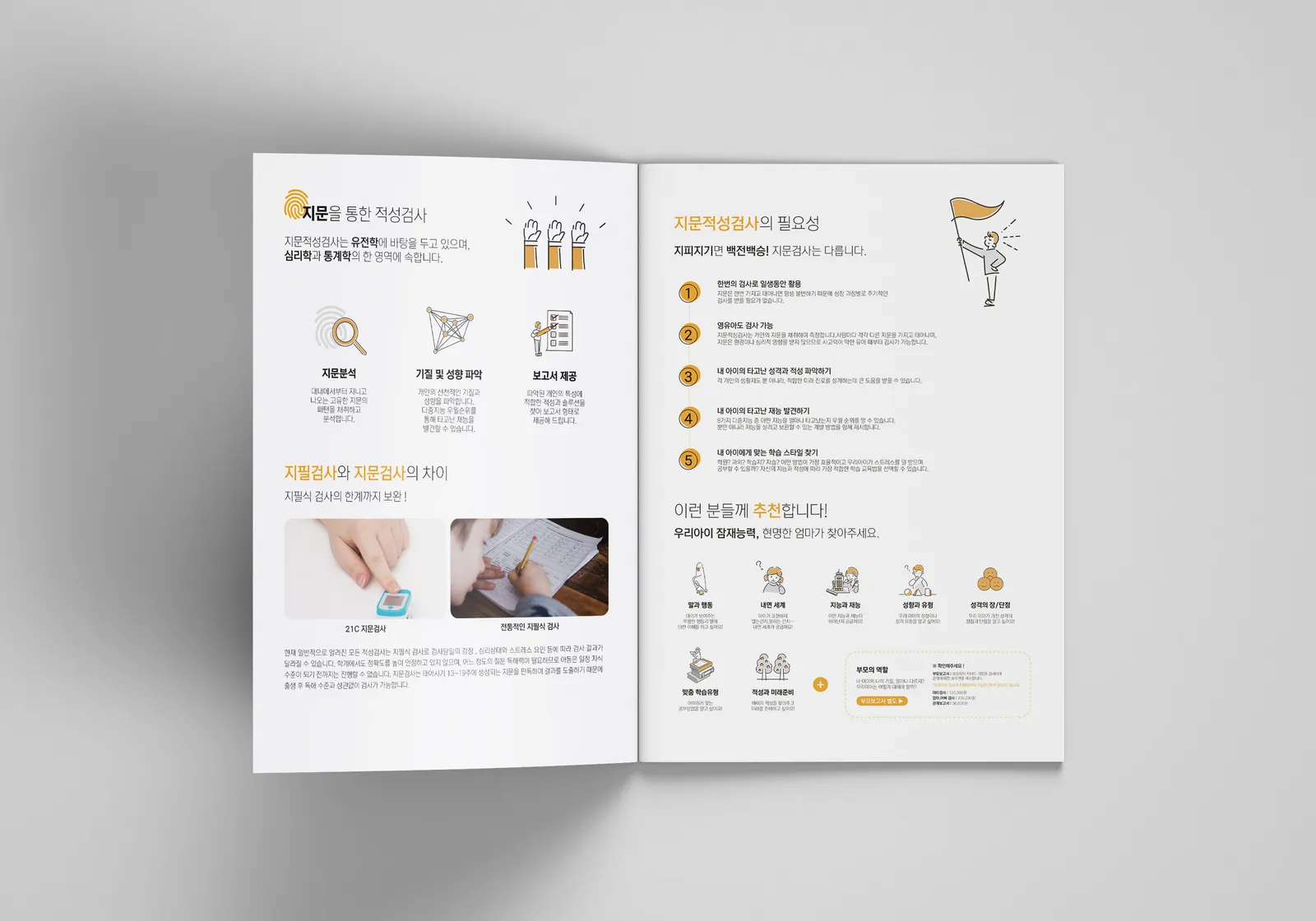 어린이 지문적성검사 브로슈어 디자인